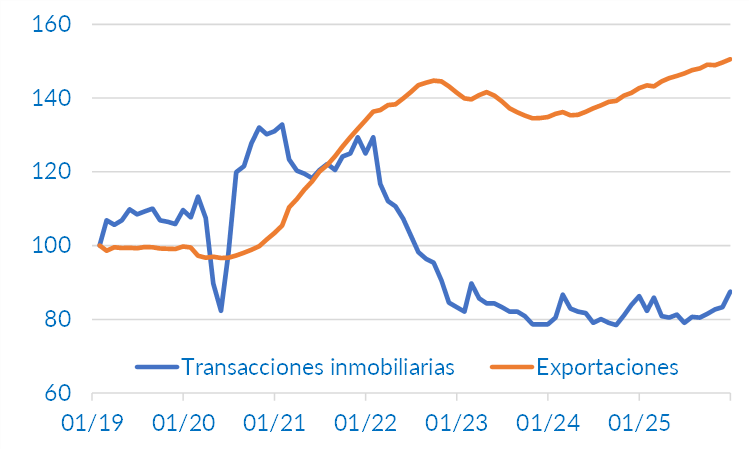 Este patrón también se identifica a un nivel más agregado, como el sectorial. La economía china muestra una evolución claramente diferenciada entre sectores, tal como muestra el gráfico 1. Por un lado, destaca su liderazgo en ámbitos como las baterías, los vehículos eléctricos o las energías renovables, que impulsan positivamente agregados como las exportaciones. Por otro lado, la economía se ve condicionada por el comportamiento de otros sectores, como la industria manufacturera tradicional de menor valor añadido o el sector inmobiliario, que han registrado caídas significativas de actividad y precios en los últimos años.