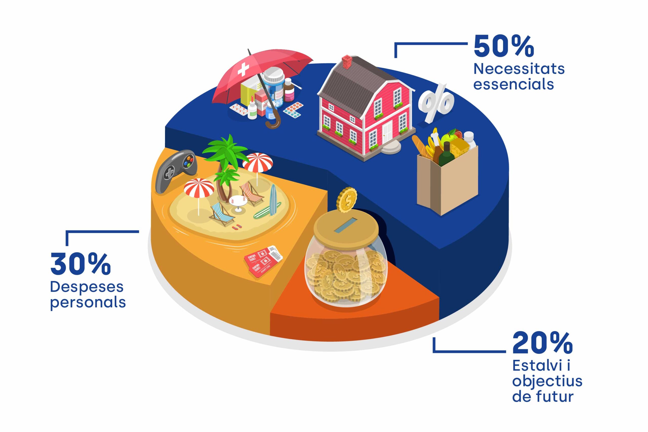 El mètode 50/30/20 divideix els ingressos en tres blocs: necessitats, estil de vida i estalvi. Aquesta estructura permet entendre ràpidament on van els diners i quins aspectes poden requerir un ajustament.